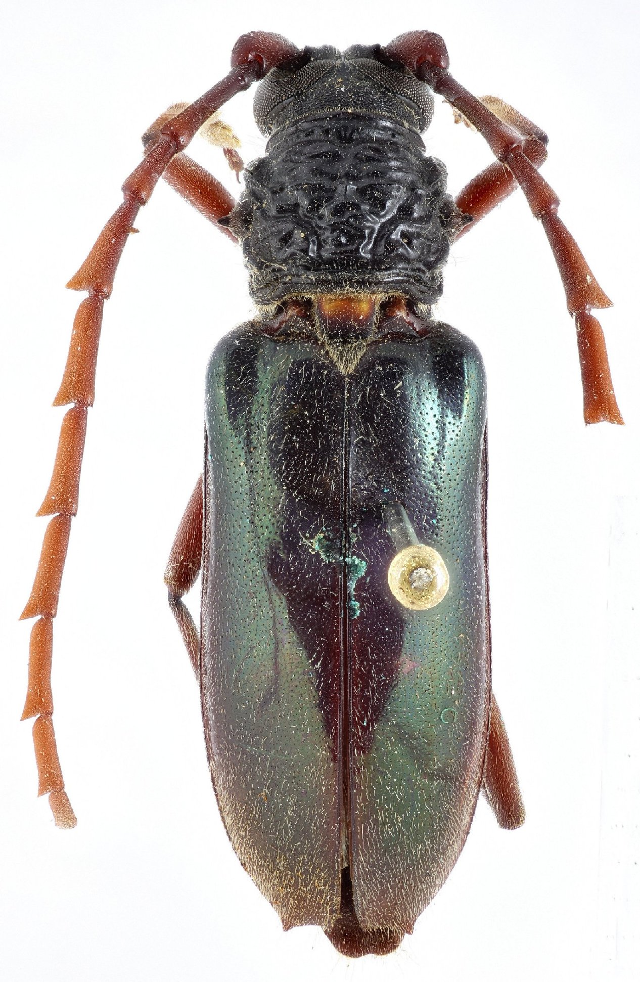 Hamaticherus viridipennis Hope Specimen Type: holotype Institution: BMNH British Museum Natural History, London, UK Photographer: Keita Matsumoto Collection Location: Sierra Leone 76277