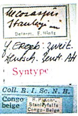 Mecosaspis stanleyi Hintz Specimen Type: syntype Institution: IRSNB Royal Belgian Institute of Natural Sciences, Brussels, Belgium Determiner: Les Cahiers Collection Location: Stanley Falls, RD Congo 52174