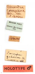 Parandra comoriana Fairmaire Specimen Type: lectotype Sex: m Institution: MNHN Museum of Natural History Paris, France Photographer: Norbert Delahaye Collection Location: Grand Comores Island 55986