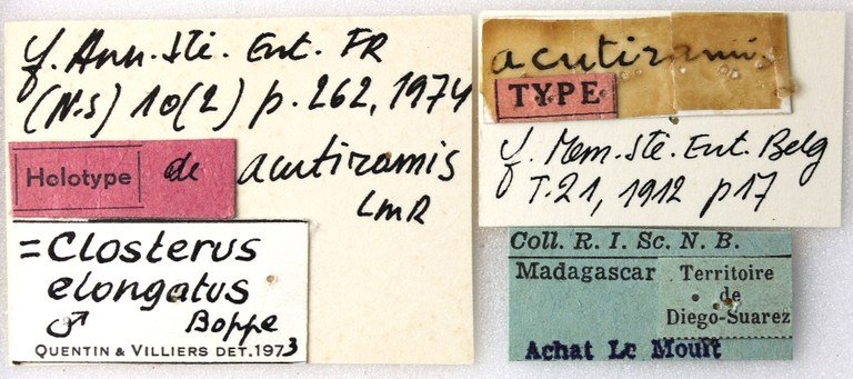 Closterus acutiramis Quentin & Villiers Specimen Type: holotype Sex: m Institution: RBINS Royal Belgian Institute of Natural Sciences, Brussels, Belgium Photographer: J Pirkl Collection Location: Diego-Suarez Territory, Madagascar 65431