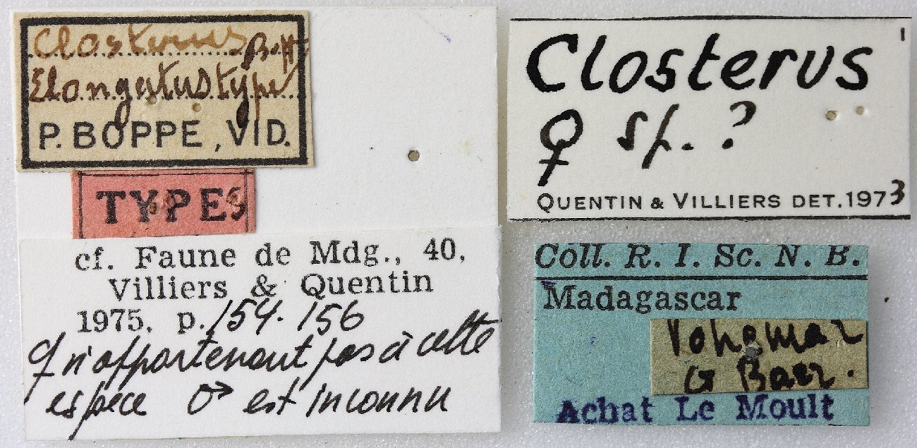 Closterus acutiramis Quentin & Villiers Specimen Type: holotype Sex: m Institution: RBINS Royal Belgian Institute of Natural Sciences, Brussels, Belgium Photographer: J Pirkl Collection Location: Diego-Suarez Territory, Madagascar 65434