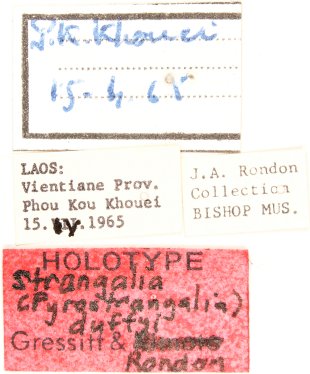 Strangalia duffyi Gressitt & Rondon Specimen Type: holotype Sex: f Institution: BPBM Bernice P. Bishop Museum, Honolulu, Hawaii, USA Photographer: Nobuo Ohbayashi Collection Location: Phou Khao Khoay, Vientiane Province, Laos 45434