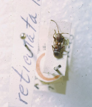 Apilocera reticulata Bates Specimen Type: holotype Institution: BMNH British Museum Natural History, London, UK Photographer: Henry Hespenheide Collection Location: San Joaquin, Alta Verapaz, Guatemala 7696