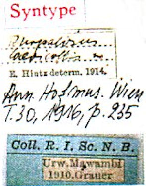 Specimen Type: syntype Institution: IRSNB Royal Belgian Institute of Natural Sciences, Brussels, Belgium Determiner: Les Cahiers Magellanes Collection Location: Urwald, Mawabi, South Africa 60196