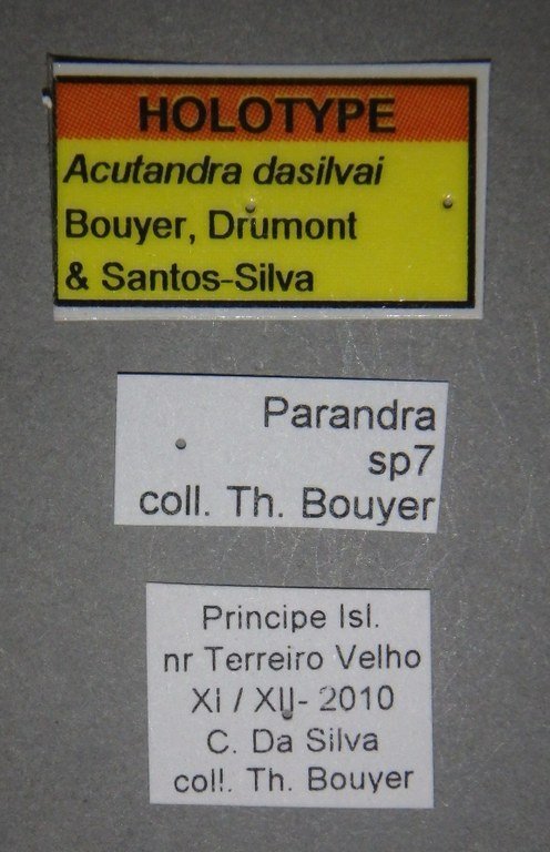 Specimen Type: holotype ©IRSNB Sex: m Institution: IRSNB Royal Belgian Institute of Natural Sciences, Brussels, Belgium Photographer: Camille Locatelli Collection Location: Terreiro Velho, Principe Sao Tome 77328