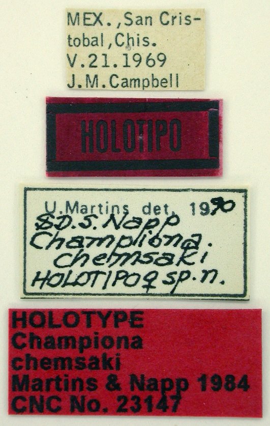 Championa bifasciata Noguera & Chemsak Specimen Type: holotype Sex: f Institution: UCB Essig Museum of Entomology, Berkeley, California, USA Collection Location: San Cristobal, Chiapas, Mexico 15537