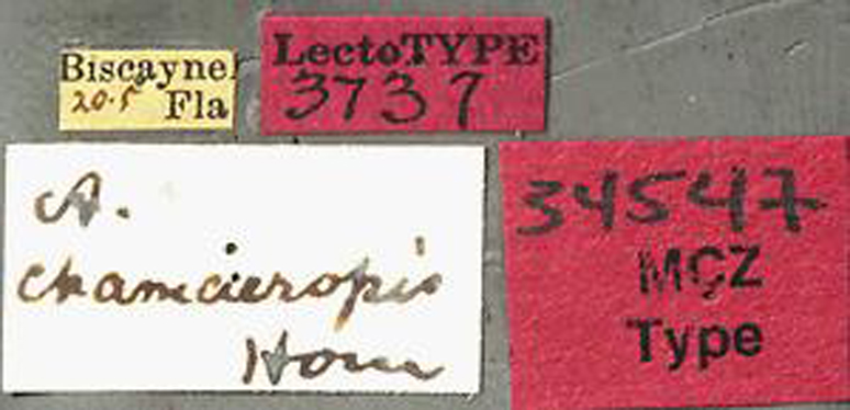 Agallissus chamaeropis Horn Specimen Type: syntype Institution: MCZ Museum of Comparative Zoology, Harvard University, Cambridge, MA, USA Photographer: P. Naskrecki, P. Perkins, and B. Farrell Collection Location: Key Biscayne, Florida 171