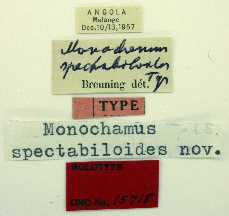 Monochamus spectabiloides Breuning Specimen Type: holotype Sex: m Institution: CNC Canadian National Collection of Insects, Ottawa, Ontario, Canada Photographer: Serge Laplante, photograph and data Determiner: Copyright of