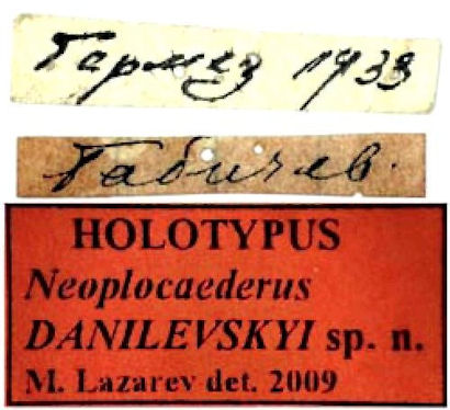 Specimen Type: holotype Sex: m Institution: Danilevsky Collection Determiner: Caucasian Entomological Bulletin Collection Location: Termez, Uzbekistan 54310