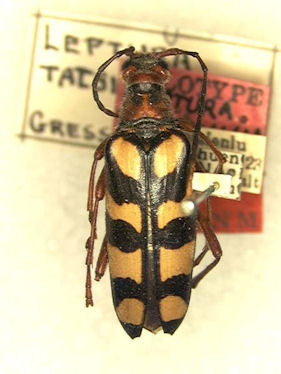 Leptura tatsienlua Gressitt Specimen Type: holotype Sex: f Institution: NMNH United States National Museum, Washington, DC, USA Photographer: Steve Lingafelter Collection Location: near Tatsienlu, Kangding County, Sichuan Province, China 51807