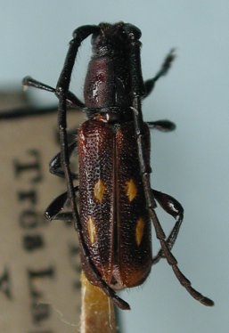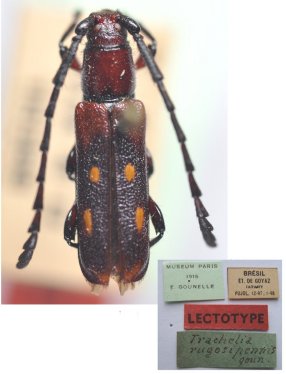 Trachelia rugosipennis Audinet-Serville Specimen Type: lectotype Sex: f Institution: MNHN Museum of Natural History Paris, France Photographer: Quintino Collection Location: Jatahy, Goias, Brazil 44874