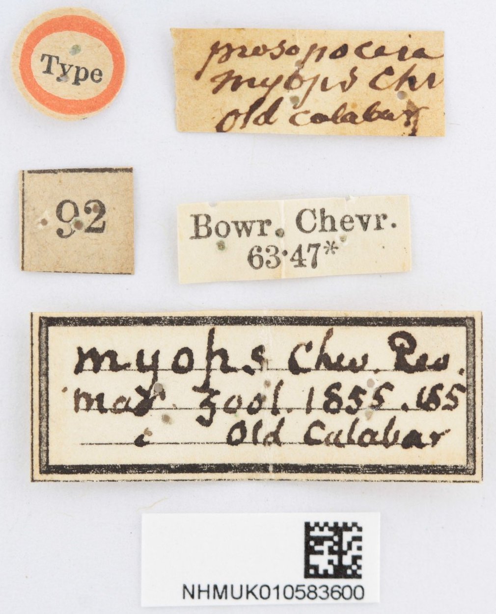 Specimen Type: holotype Institution: BMNH British Museum Natural History, London, UK Photographer: Keita Matsumoto Collection Location: Old Calabar, Nigeria 65973