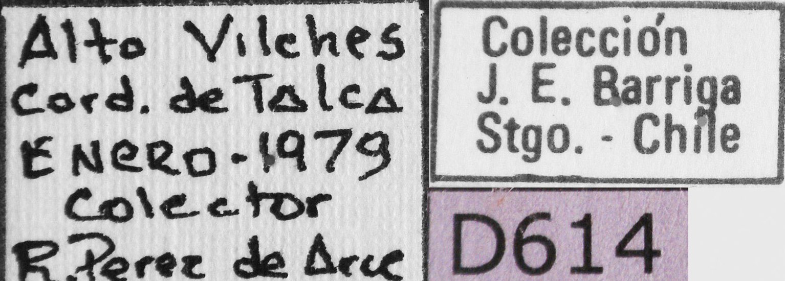 Institution: JEBC Juan E Barriga Tunon Collection, Chile Photographer: Juan Barriga Tunon Determiner: Pena Collection Location: Alto Vilches, Talca, Chile 28993