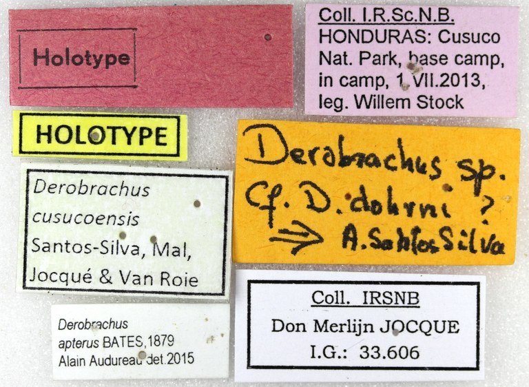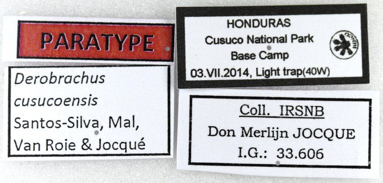 Specimen Type: holotype Sex: m Institution: IRSNB Royal Belgian Institute of Natural Sciences, Brussels, Belgium Photographer: Antonio Santos-Silva Collection Location: Cusuco National Park, Cortes, Honduras 66338