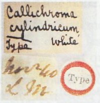 Callichroma cylindricum White Specimen Type: holotype Institution: BMNH British Museum Natural History, London, UK Photographer: Pierre Juhel Collection Location: Sierra Leone 79143