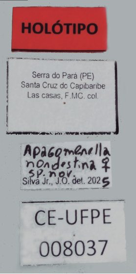 Specimen Type: holotype Sex: f Institution: UPFE Coleção Entomológica da Universidade Federal do Pernambuco, Recife, Brazil Photographer: Jose Silva Junior Collection Location: Serro do Para, Santa Cruz do Capibaribe, Pernambuco, Brazil 101369