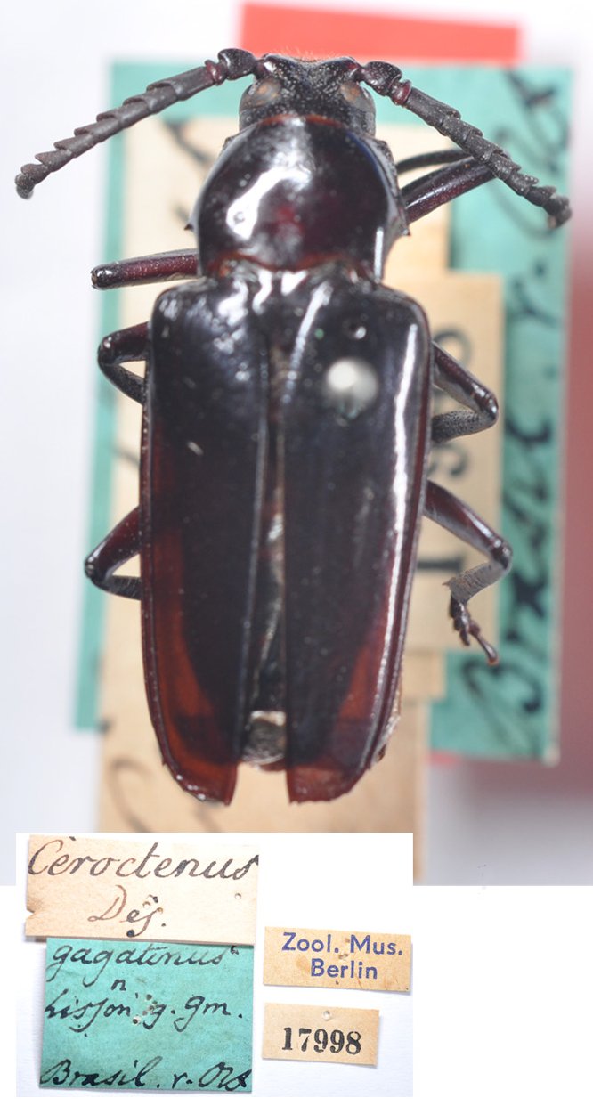 Cerambyx gagatinus Germar Specimen Type: lectotype Sex: m Institution: ZMHB Museum für Naturkunde der Humboldt-Universität, Berlin, Germany Photographer: Monne Collection Location: Brazil 48223
