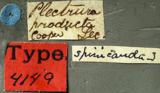 Plectrura producta LeConte Specimen Type: holotype Institution: MCZ Museum of Comparative Zoology, Harvard University, Cambridge, MA, USA Photographer: P. Naskrecki, P. Perkins, and B. Farrell 2526