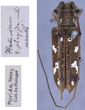 Hammoderus quadriplagiatus Breuning Specimen Type: holotype Sex: m Institution: NHMB Naturhistorisches Museum, Basel, Switzerland Photographer: Gabriel Biffi Collection Location: Merida, Venezuela 59587