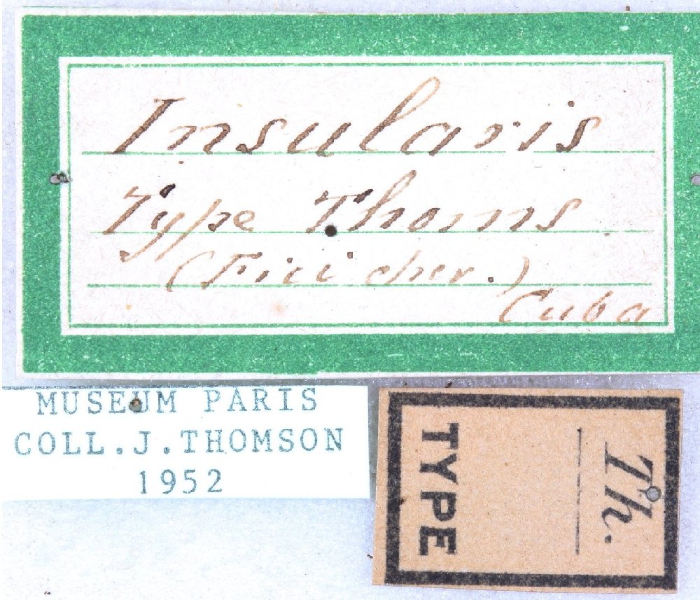 Specimen Type: holotype Sex: f Institution: MNHN Museum of Natural History Paris, France Photographer: Gerard Tavakilian Collection Location: Cuba? 63516