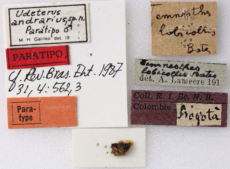 Udeterus andrarius Galileo Specimen Type: paratype Sex: m Institution: RBINS Royal Belgian Institute of Natural Sciences, Brussels, Belgium Photographer: J Pirkl Collection Location: Colombia 65334