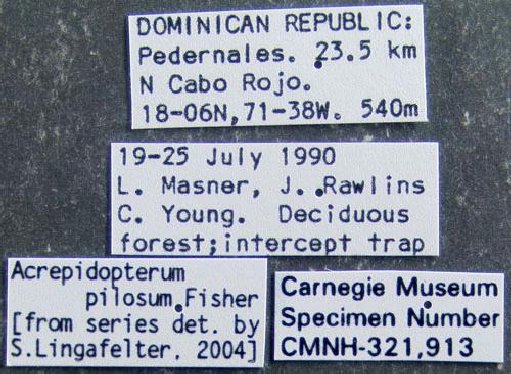 Institution: CMNH Carnegie Museum of Natural History, Pittsburgh, PA, USA Photographer: P. Naskrecki, P. Perkins, and B. Farrell Determiner: Lingafelter Collection Location: Pedernales, Dominican Republic 24783