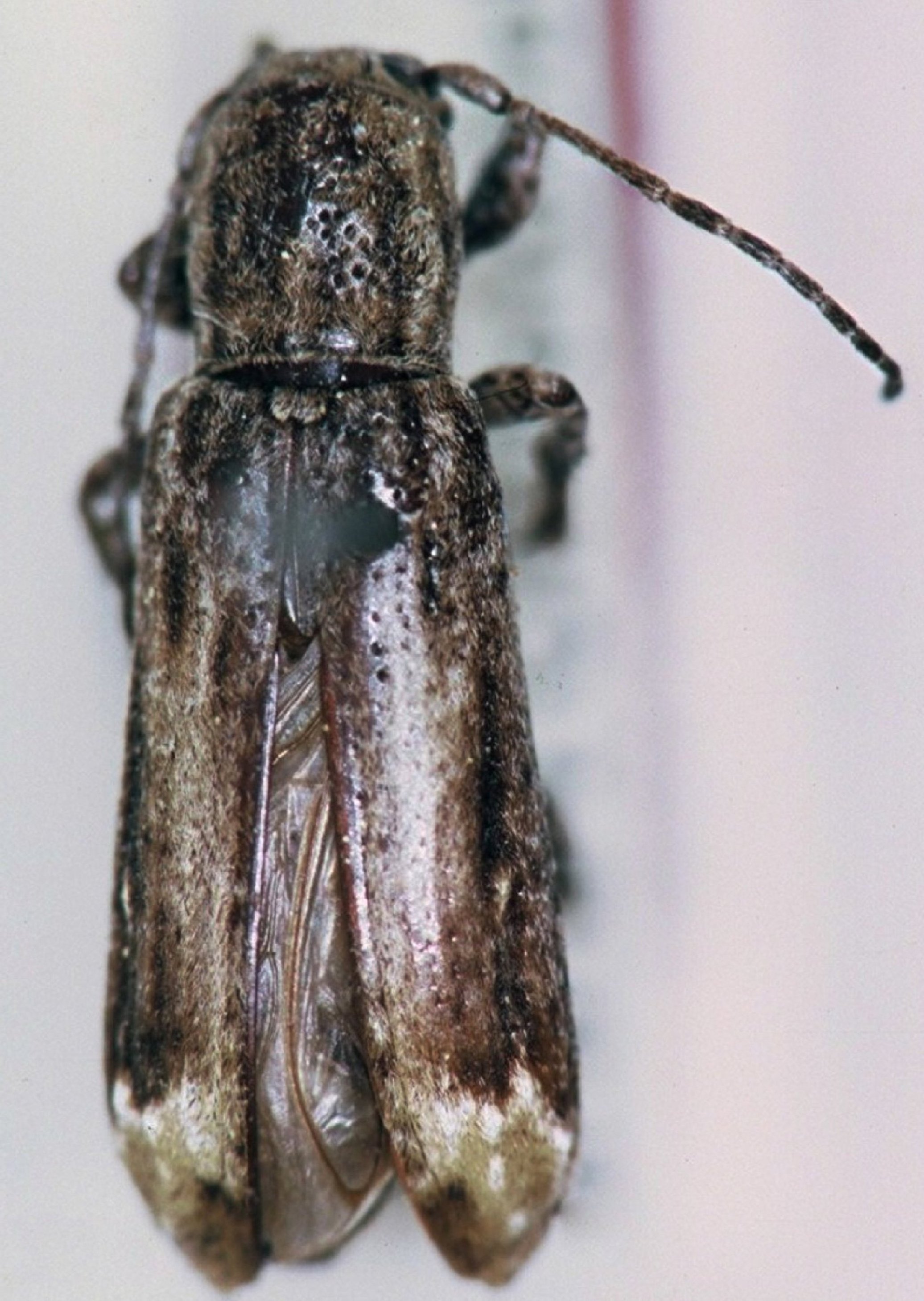 Adetus alboapicalis Breuning Specimen Type: holotype Sex: f Institution: NHRS Naturhistoriska Riksmuseet, Stockholm, Sweden Photographer: JS Moure Collection Location: 200 km NE San Cristobal, Tachira, Venezuela 96060