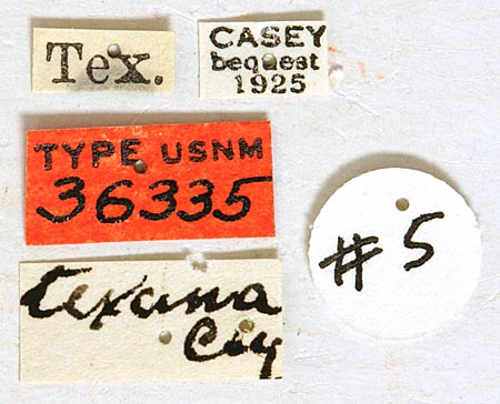 Specimen Type: holotype Sex: f Institution: NMNH United States National Museum, Washington, DC, USA Photographer: Steve Lingafelter Collection Location: Texas 40210