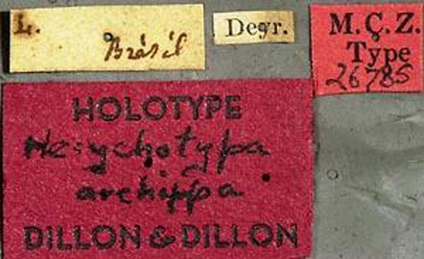 Hesychotypa archippa Dillon & Dillon Specimen Type: holotype Institution: MCZ Museum of Comparative Zoology, Harvard University, Cambridge, MA, USA Collection Location: Brazil 16781