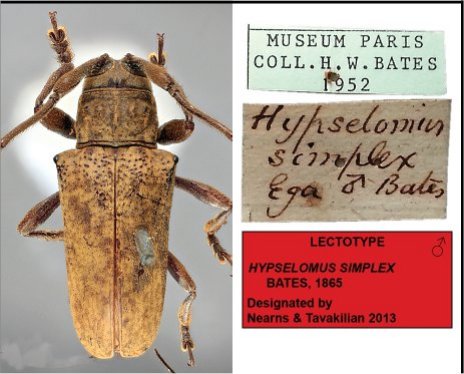 Hypselomus simplex Bates Specimen Type: syntype, lectotype Sex: m Institution: MNHN Museum of Natural History Paris, France Collection Location: Tefé (originally Ega), Amazonas, Brazil 16885