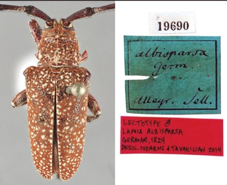 Lamia albisparsa Germar Specimen Type: lectotype Sex: m Institution: ZMHB Museum für Naturkunde der Humboldt-Universität, Berlin, Germany Photographer: Gino Nearns Collection Location: Brazil 50047