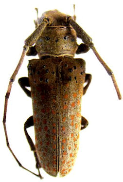 Oncideres aurantiaca Galileo & Martins Specimen Type: holotype Sex: m Institution: ACMT American Coleoptera Collection, Texas (now at FSCA) Collection Location: Parque Nacional Pic Pijol, Linda Vista, Yoro, Honduras 30853