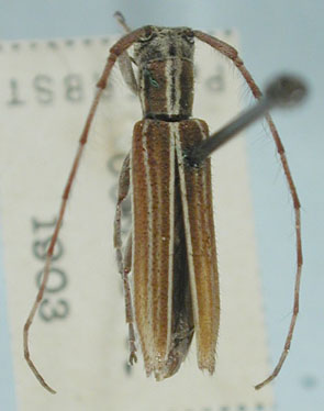 Agapanthia suturella Blanchard Specimen Type: syntype Institution: MNHN Museum of Natural History Paris, France Photographer: JS Moure Collection Location: Valparaiso or Illapel, Chile 76656