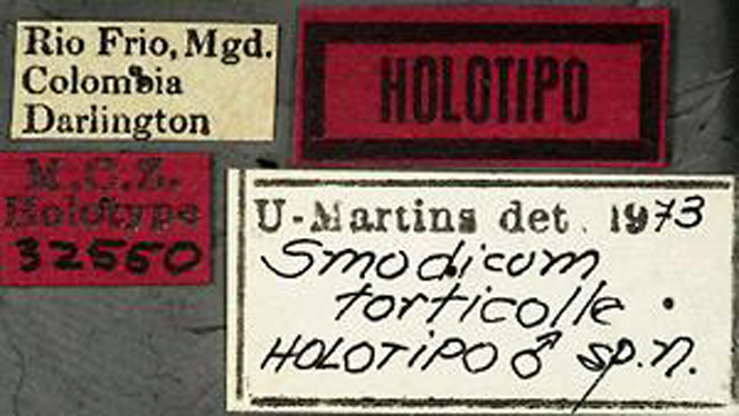 Specimen Type: holotype Sex: m Institution: MCZ Museum of Comparative Zoology, Harvard University, Cambridge, MA, USA Photographer: P. Naskrecki, P. Perkins, and B. Farrell Collection Location: Rio Frio Magdalena, Colombia 18487